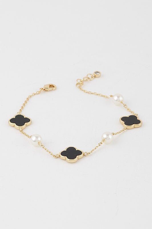 Multi Clover Pearl Charm Bracelet