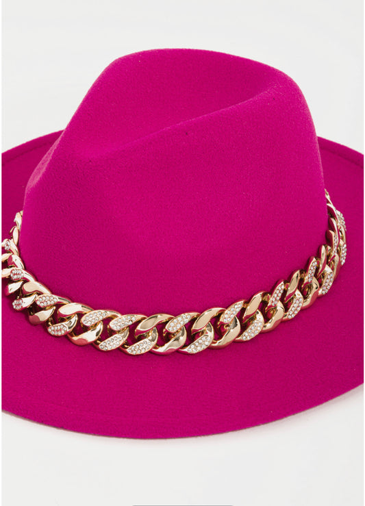 Black & Gold Chain Small Brim Fedora