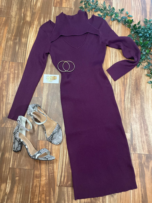 Plum Ribbed MIDI Dress